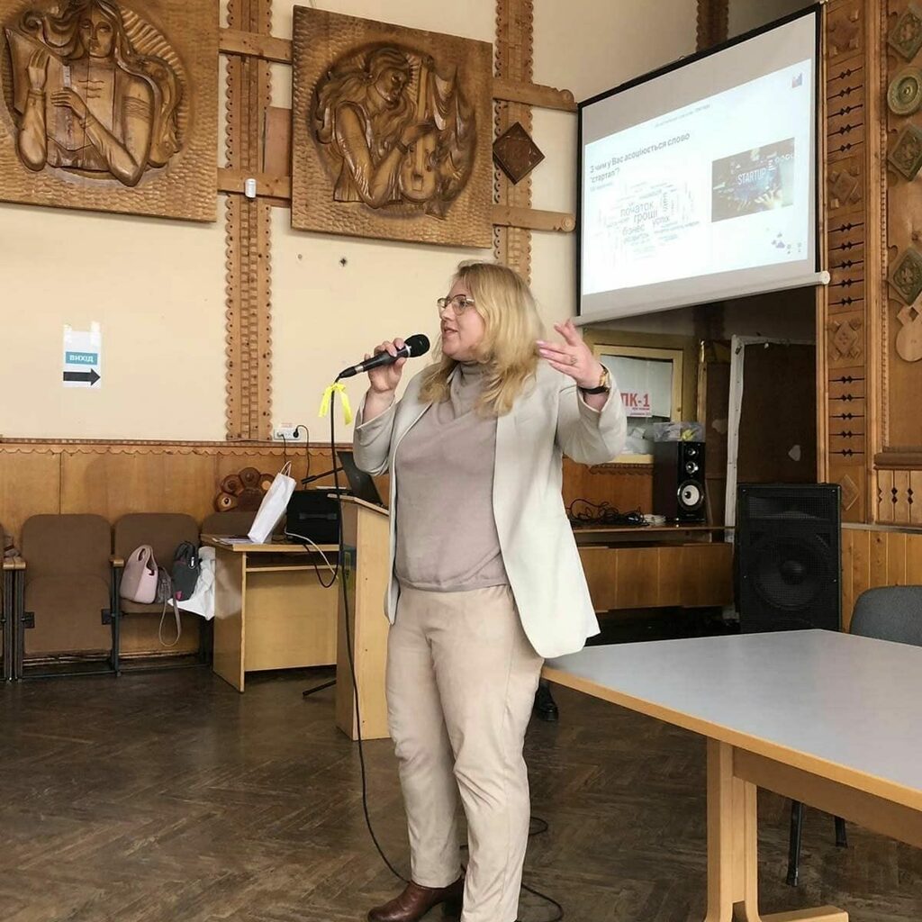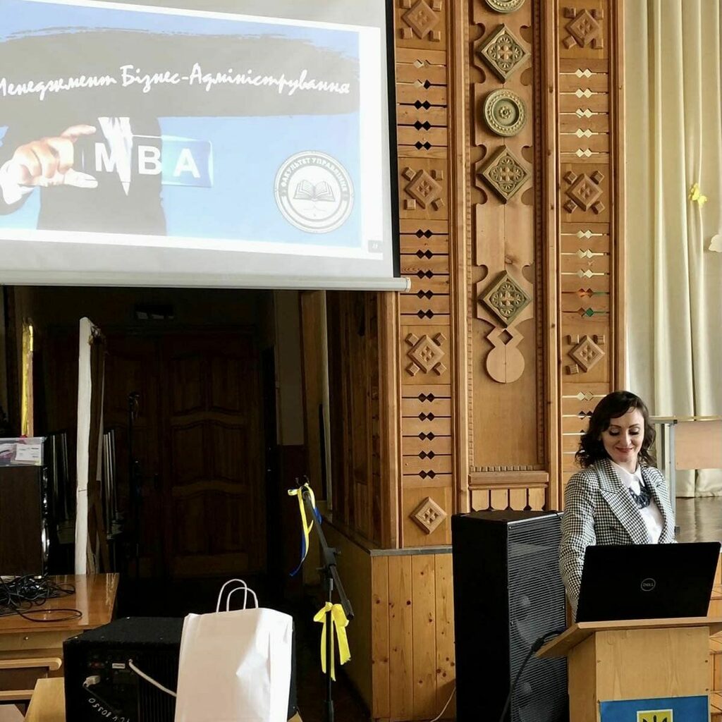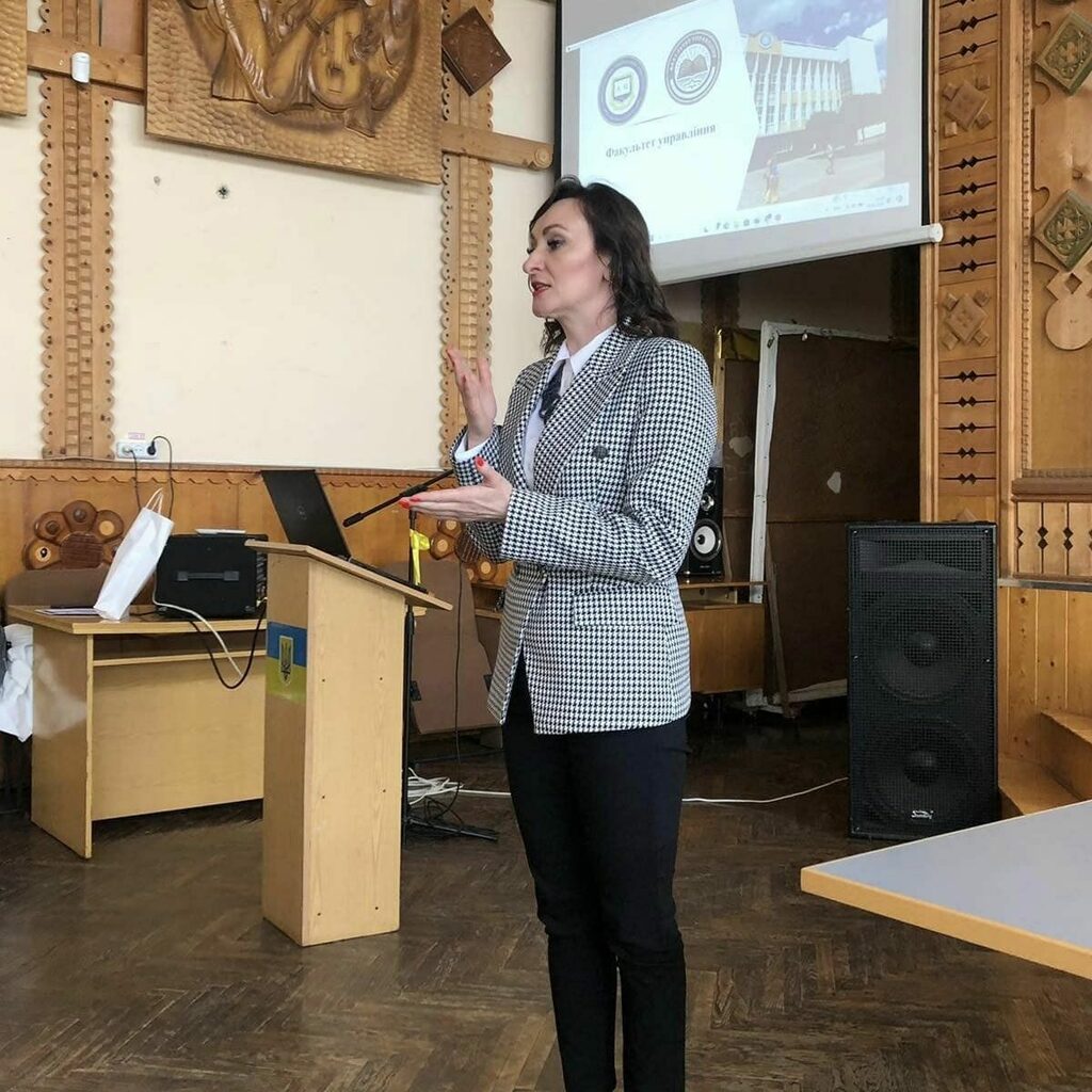 Під час інтерактивного тренінгу 5 квітня, декан факультету управління Ірина П’ятничук та завідувач кафедри менеджменту та бізнес-адміністрування Антоніна Томашевська: