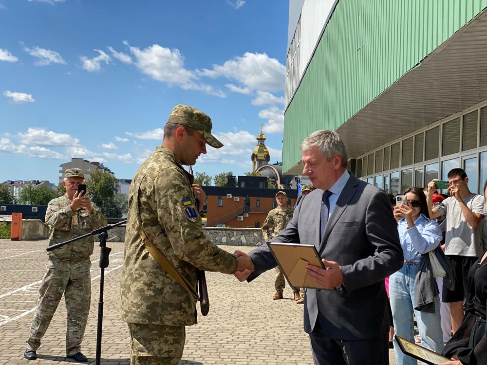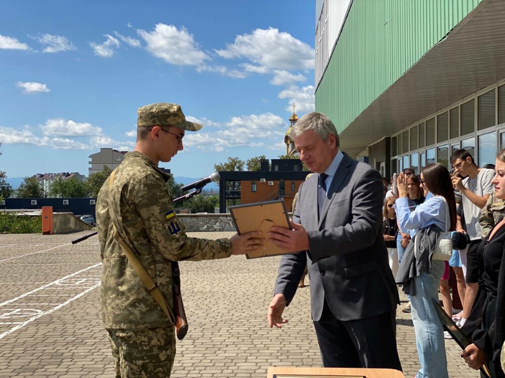 «Дорогі наші студенти-захисники та усі присутні! Ми зібралися тут, щоб не тільки відзначити вас, а й подякувати за ваш вибір, вашу мужність та сильну громадянську позицію. Кожен із вас зробив свідомий вибір, і ми пишаємося вами. Ви – ті, хто буде розбудовувати нашу країну. Завдяки вам ми бачимо нашу державу в майбутньому міцною та в безпеці. Особлива подяка батькам та викладачам, які доклали чималих зусиль, щоб ви стали гідними носити офіцерське звання ЗСУ. Військова кафедра нашого університету, яка працює вже багато років, сьогодні випускає 31 курсанта, які отримають звання молодшого лейтенанта», – зазначив в.о. ректора Прикарпатського університету Ігор Цепенда.