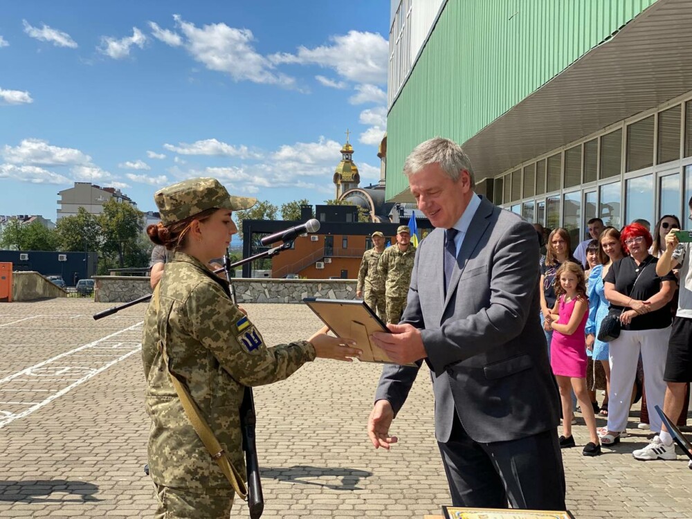 Сьогодні відбулися урочисті заходи з нагоди складання військової присяги на вірність українському народові випускниками кафедри військової підготовки Прикарпатського національного університету ім. Василя Стефаника. Цього року кафедру закінчили 31 випускник за спеціальностями «Організація морально-психологічного забезпечення військ (сил)», «Математичне та програмне забезпечення функціонування автоматизованих систем, систем захисту інформації та кібернетичної безпеки» та «Організація перевезень і управління на автомобільному транспорті».