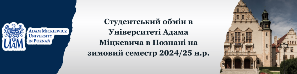 Студентський обмін в Університеті Адама Міцкевича в Познані на зимовий семестр 2024/25 н.р.