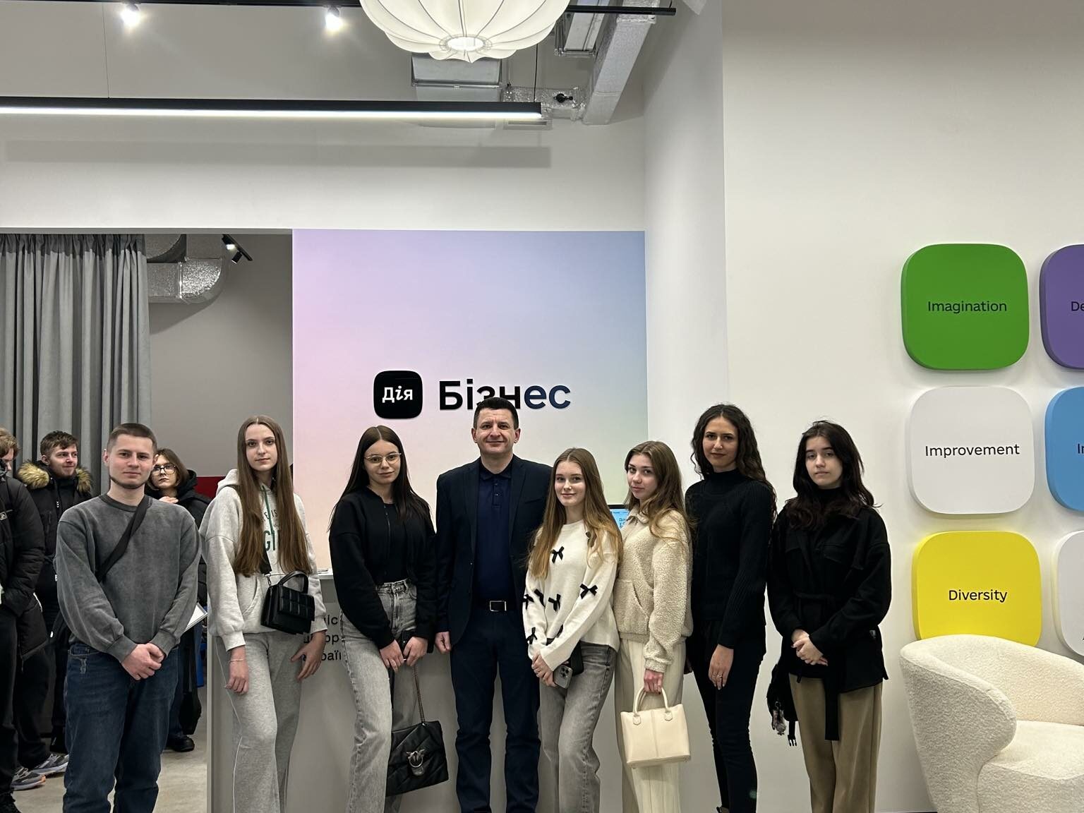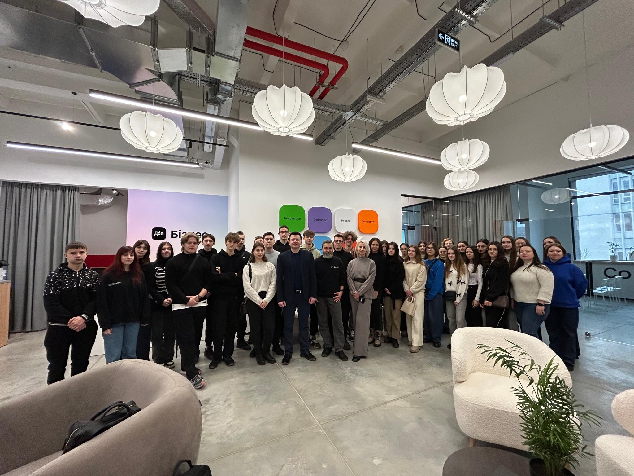 Студенти освітньої програми «Менеджмент у сфері інформаційних технологій» разом із завідувачем кафедри менеджменту в інформаційних технологіях Мацолою М.М. відвідали Центр Дія.Бізнес, що розташований у інноваційному просторі Промприлад.Реновація.